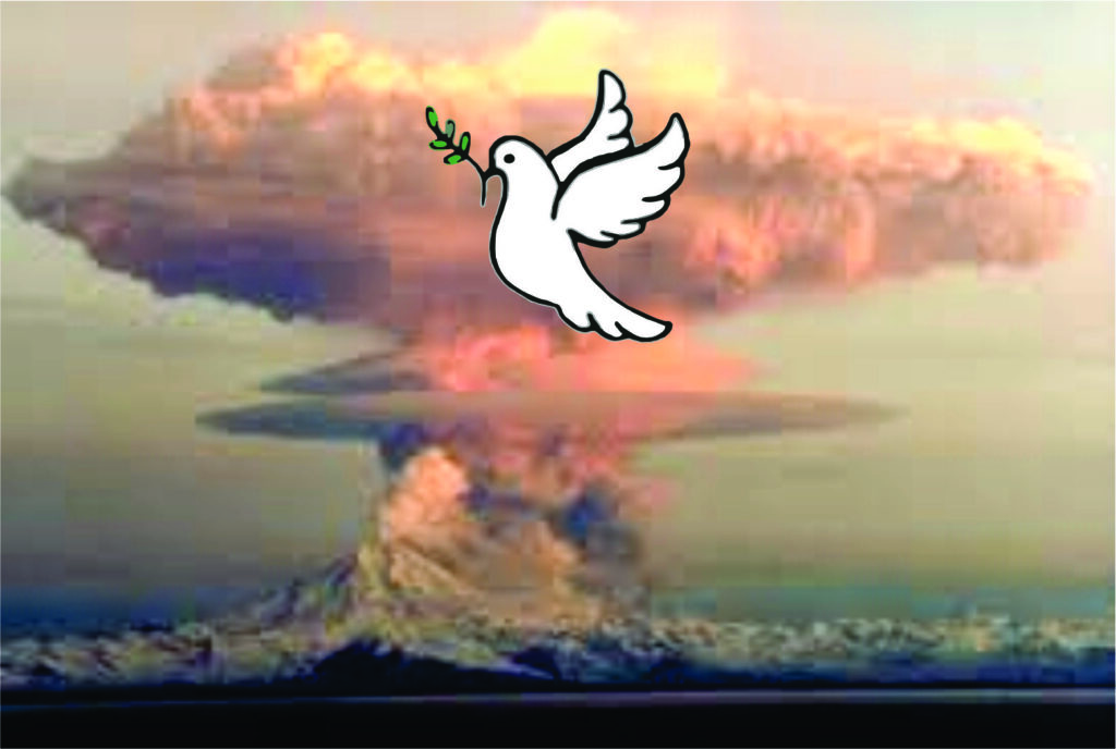 Enquanto a pombinha branca bate asas por aí com a flor da paz pendurada no bico, cá embaixo os estopins aguardam o riscar do fósforo. As ogivas nucleares, apontadas para todos os quadrantes da terra, estão a postos, empanturradas de seu veneno mortífero.
